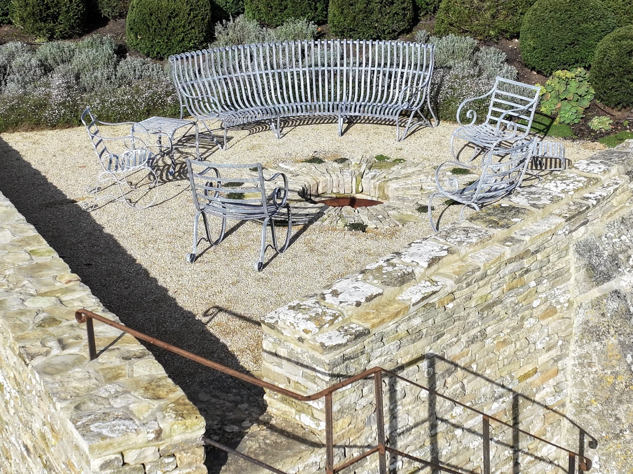The proposal for what we are calling the Derelict Garden. An oddly shaped raised walled garden with views across the valley. We'll be adjusting the garden levels so that there will be a level lawn in the middle with a circular water feature and asymmetric topiary surrounding it. We will mow the grass around the water and topiary on a much higher setting. The cobblestone pathways leading to the centre water feature will be created using the stone that we salvage from the walled garden. Same goes for the perimeter cobble paths. In the lowest corner of the garden a hidden fire pit area will feature. The cloudy Taxus hedging will hide this area.