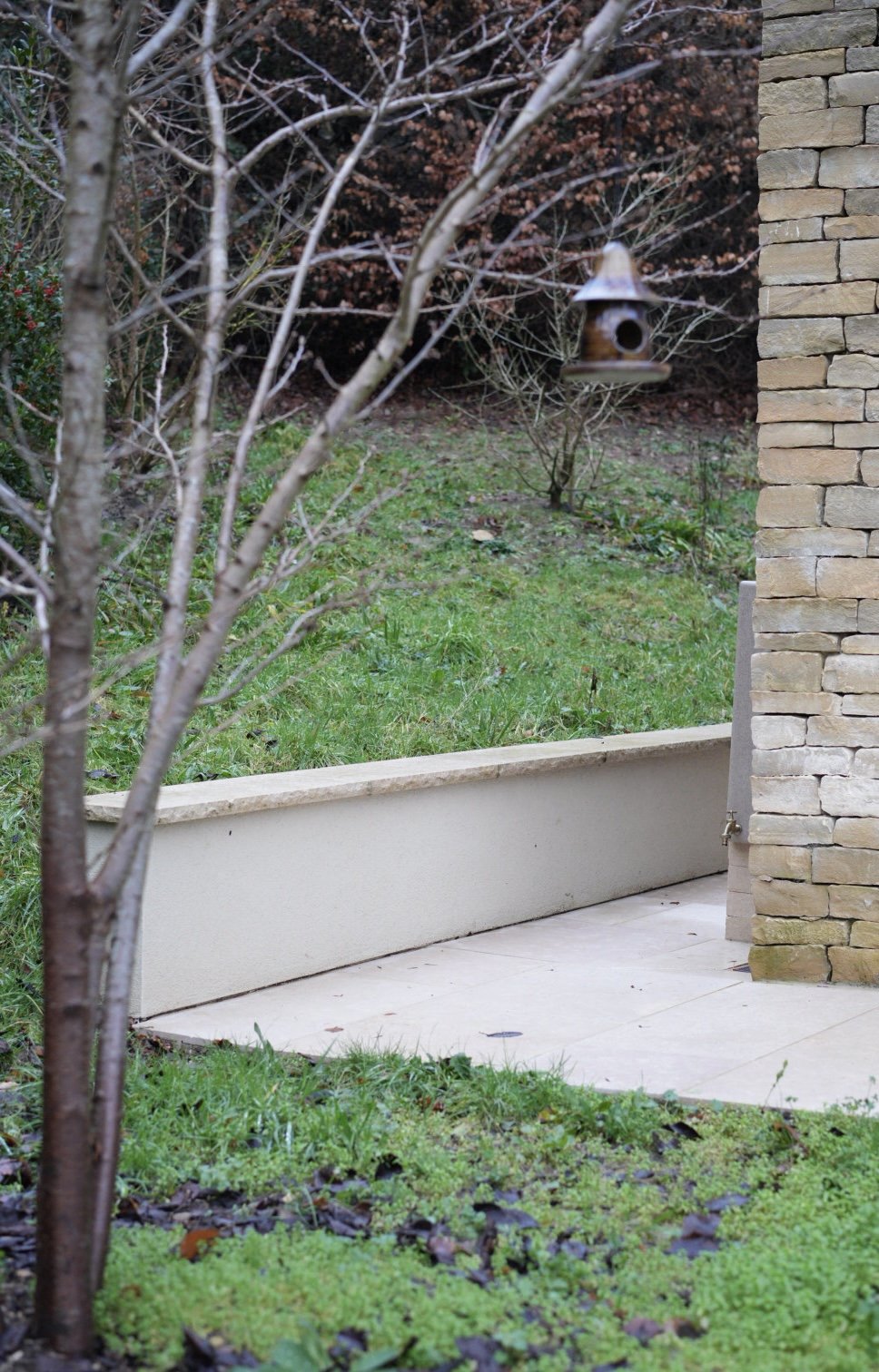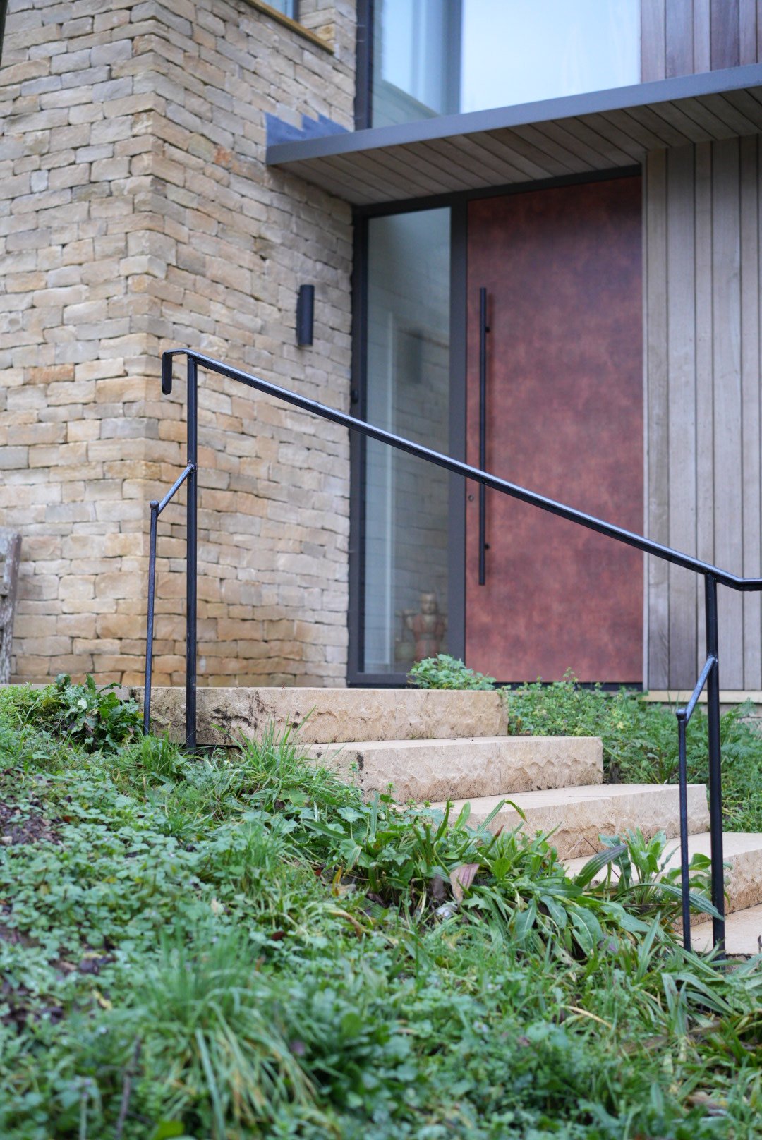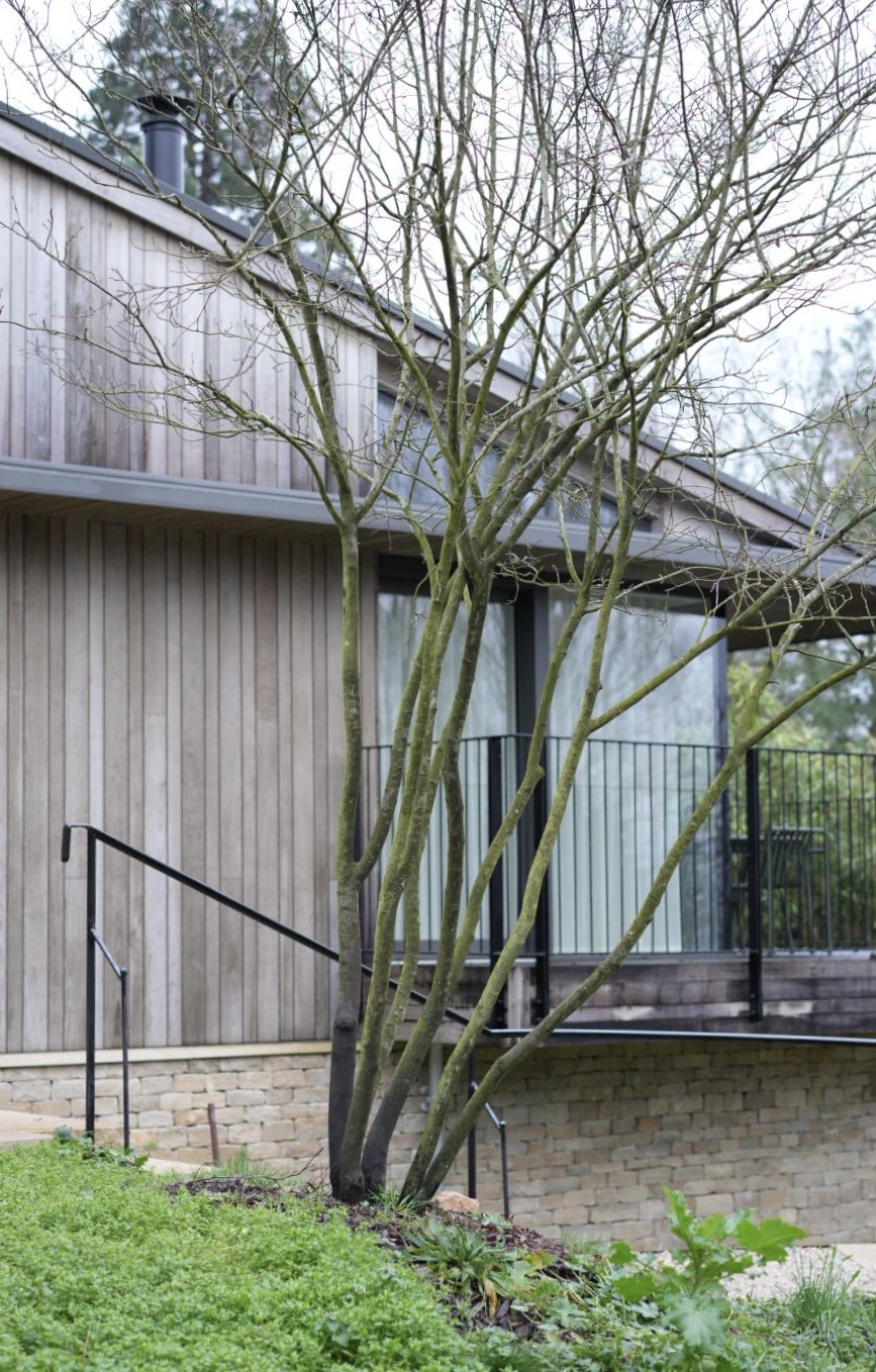 Collaboration with Seed Landscapes. This was essentially a blank canvas after the plot was cleared for a full renovation of the house — both interior and exterior. Seed Landscapes produced a beautiful, sensitive design with minimal hard landscaping, featuring a striking set of steps leading to the front door. The majority of the front gardens are now intentionally dedicated to meadow planting and native hedging, creating a soft, wildlife‑friendly approach to the house.